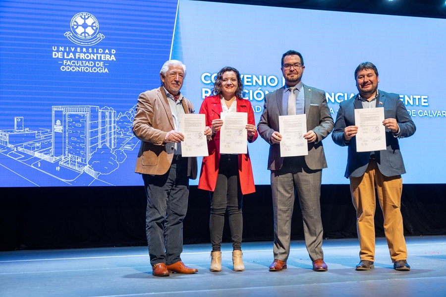 El convenio fue firmado por el rector de la Universidad, Dr. Juan Manuel Fierro Bustos; el decano de la Faculta, Dr. Gonzalo Oporto Venegas; el alcalde de la comuna de Galvarino, Hans González Espinoza; y la directora del DSM, Valeria Arias Bascur.