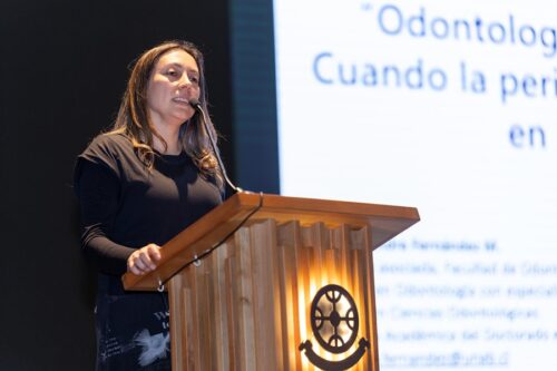 En este contexto, la destacada profesional expuso el trabajo desarrollado en esta área ante la comunidad odontológica. “La conferencia aborda como la Odontología es capaz también de aportar en otras disciplinas, como es la Dermatología, a través de los biomarcadores que podemos encontrar en el fluido crevicular. Esto es en psoriasis y nuestro proyecto con la UFRO es en dermatitis atópica, entonces está relacionado, pero vamos en etapas posteriores, ya que recién llevamos trabajando seis meses. Lo principal de hoy (en la conferencia) es ver cómo la Odontología puede apoyar a otras áreas médicas”, indicó la Dra. Fernández.